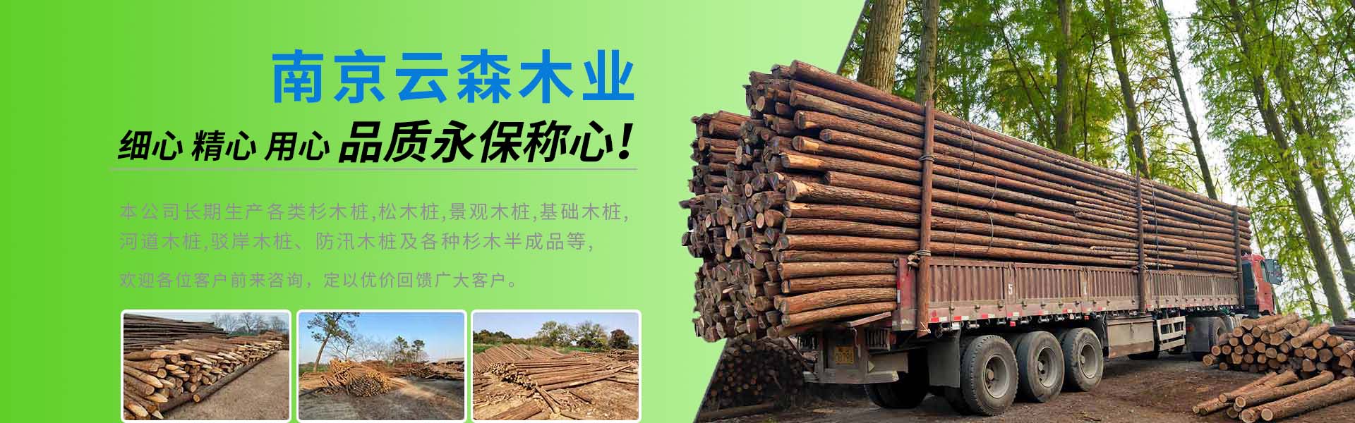 南京市云森木業(yè)有限公司位于南京市高淳區(qū)。是一家生產(chǎn)加工,線上銷售為一體的現(xiàn)代化企業(yè)。擁有完善、科學(xué)的質(zhì)量管理體系及工作團(tuán)隊(duì)。 公司主營(yíng)松木樁,杉木樁,打樁木,河道木樁,駁岸木樁,防汛木樁,景觀木樁、園林綠化支撐桿等,也可支持方料,木板等木材定制加工產(chǎn)品,所選原材料均為黃山中心林區(qū),樹齡均在三十年左右。質(zhì)地緊密,樹形優(yōu)美。 本公司貨源充足,供貨能力強(qiáng),地處高淳,交通方便利,江浙滬皖送貨上門,當(dāng)天可達(dá)。本著“誠(chéng)信為本,客戶至上”的經(jīng)營(yíng)宗旨,真誠(chéng)希望與您合作。 歡迎各位客戶前來(lái)咨詢,定以優(yōu)良品質(zhì)和價(jià)格回饋廣大客戶。
